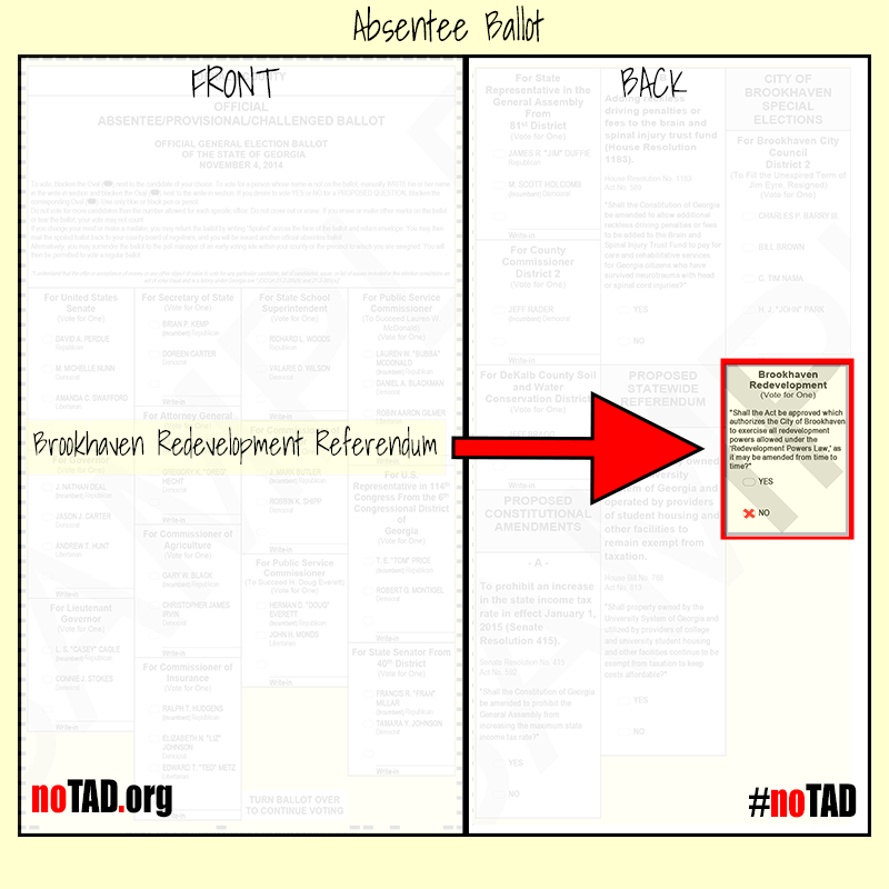 The Brookhaven Redevelopment question appears on the back of the ballot. To see where it appears on the ballot click below to see the full-size image.